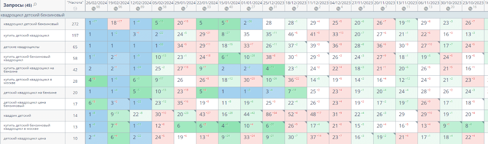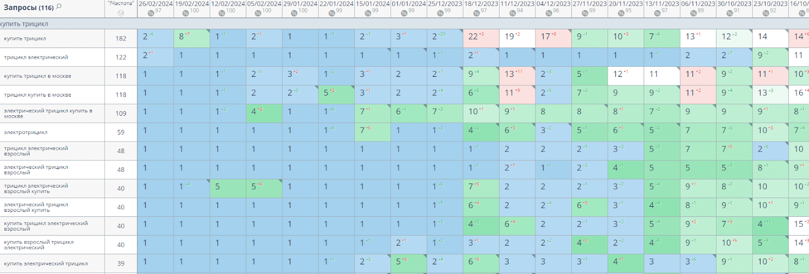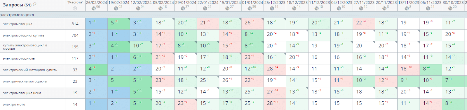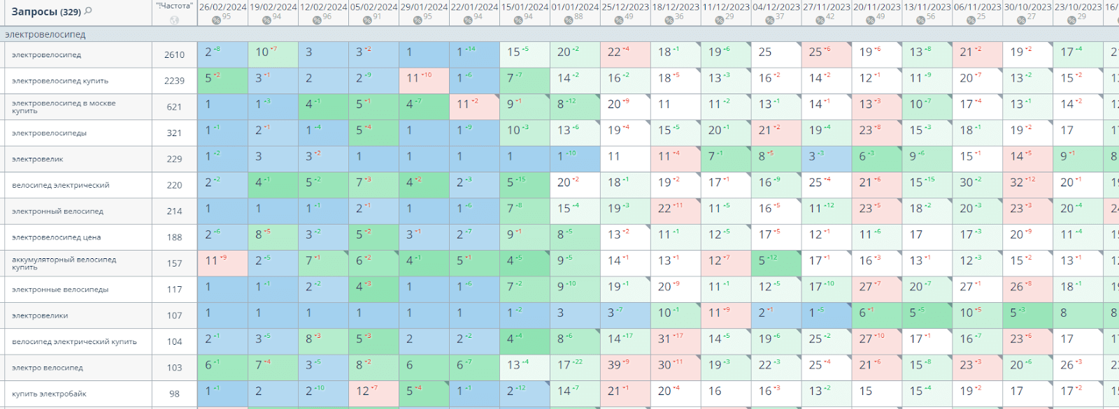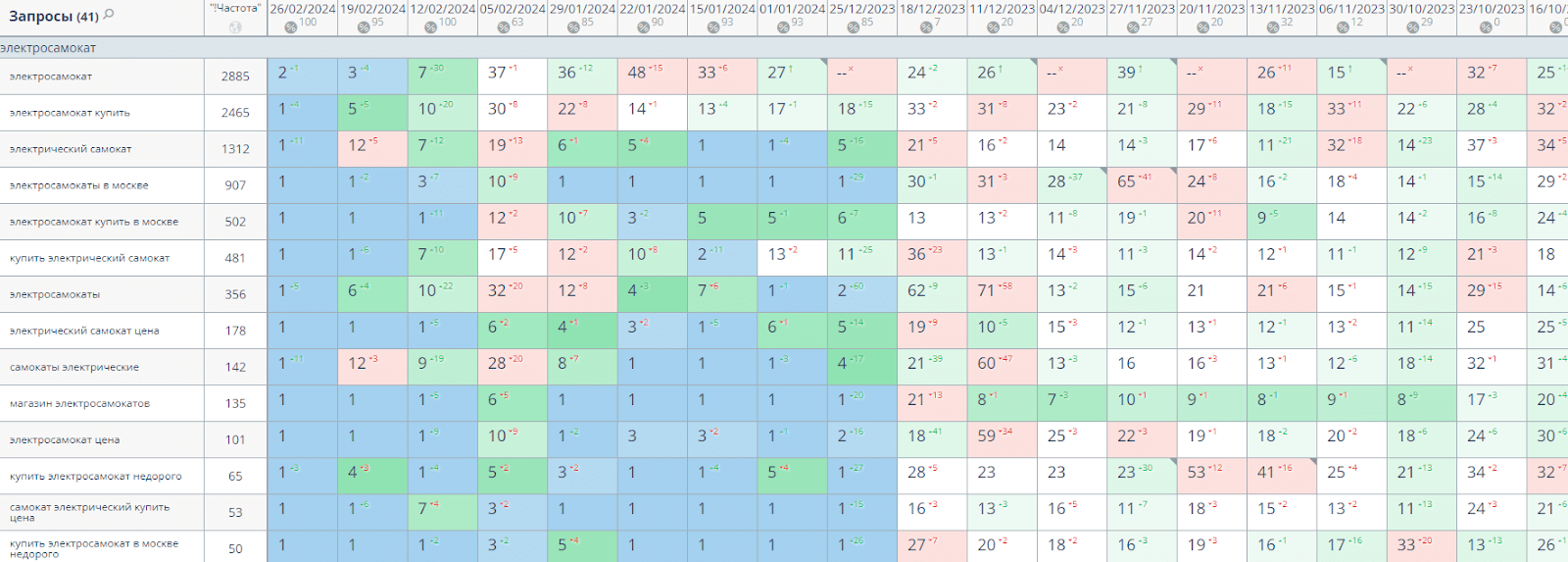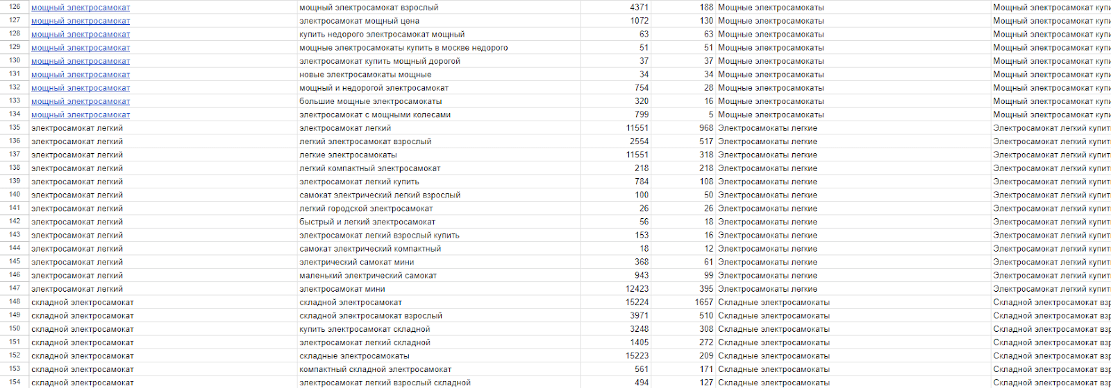 Собрали максимально полное семантическое ядро по нише электротранспорта - более 5000 поисковых запросов. Внимательно проанализировали конкуренцию и частотность каждого.
