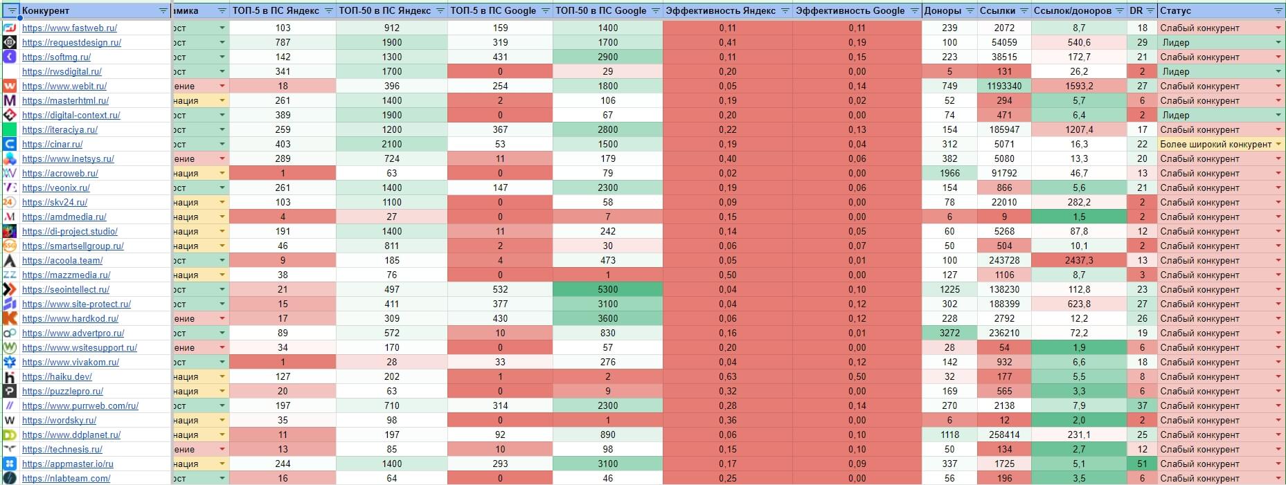 - Слабый ссылочный профиль: анализ показал, что конкуренты имели более развитую ссылочную массу.