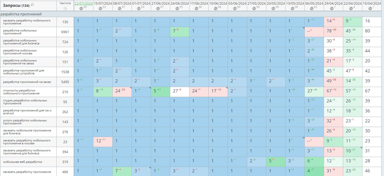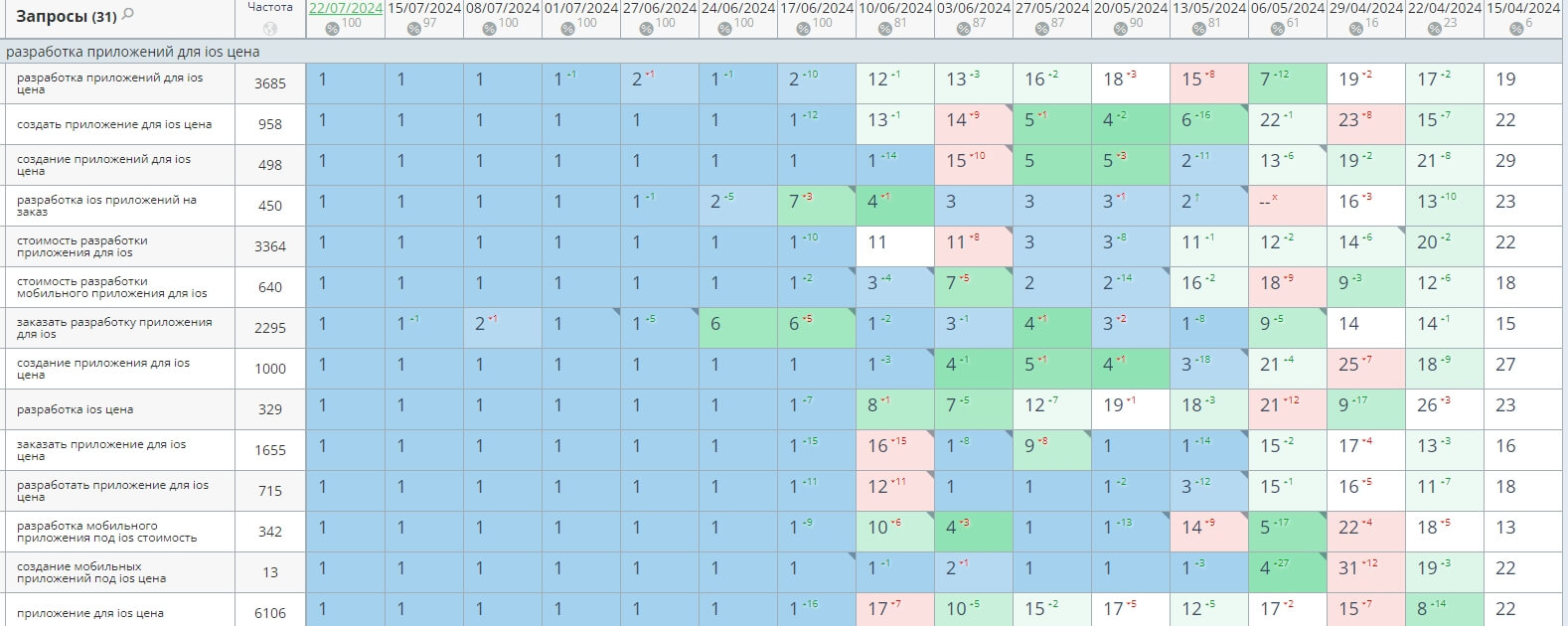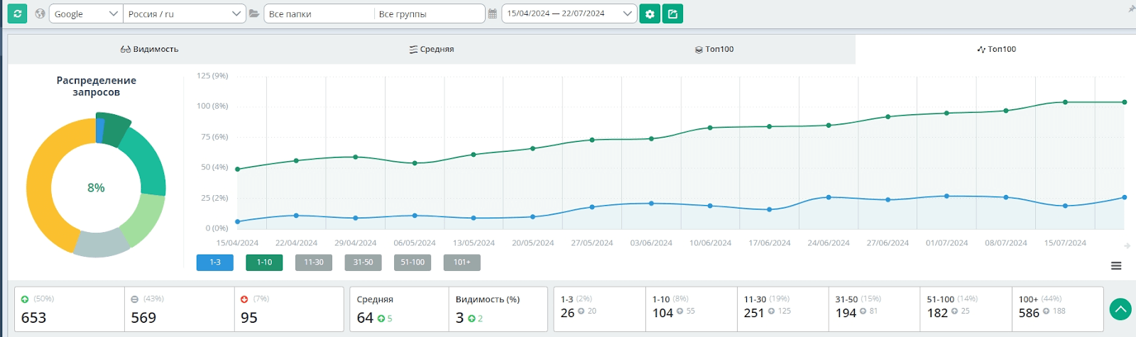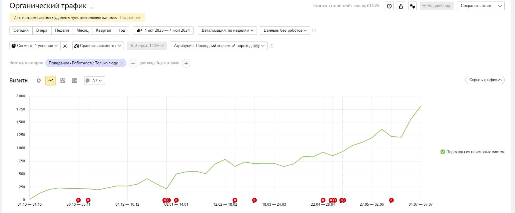 - Высокая конкуренция в нише: многие запросы, даже коммерческие, приводили информационный трафик, а не потенциальных клиентов.