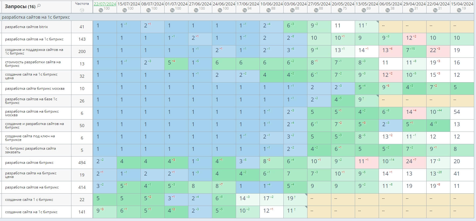 - "Разработка сайтов на Битрикс": улучшение позиций в ТОП-10