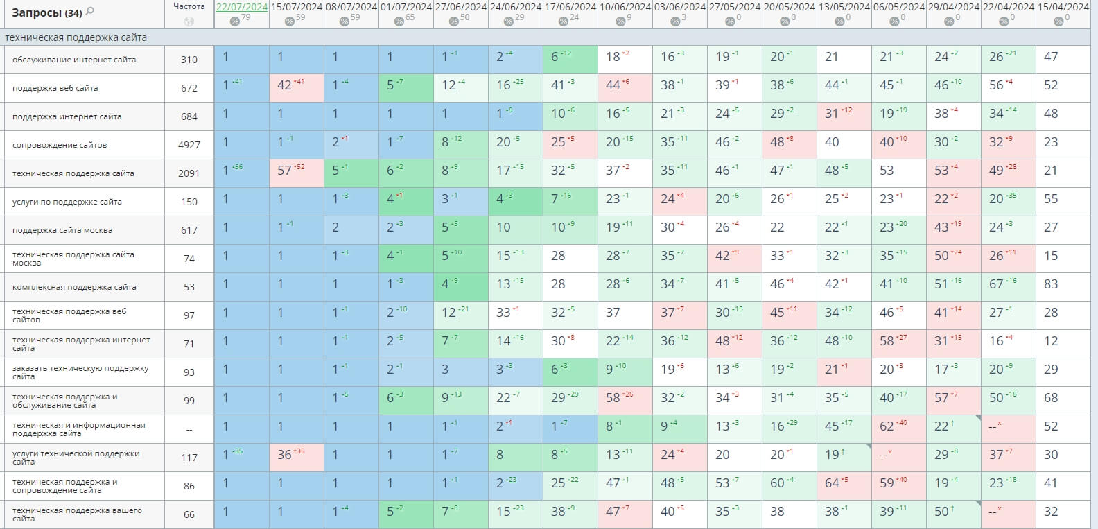 - "Техническая поддержка сайта": вхождение в ТОП-10