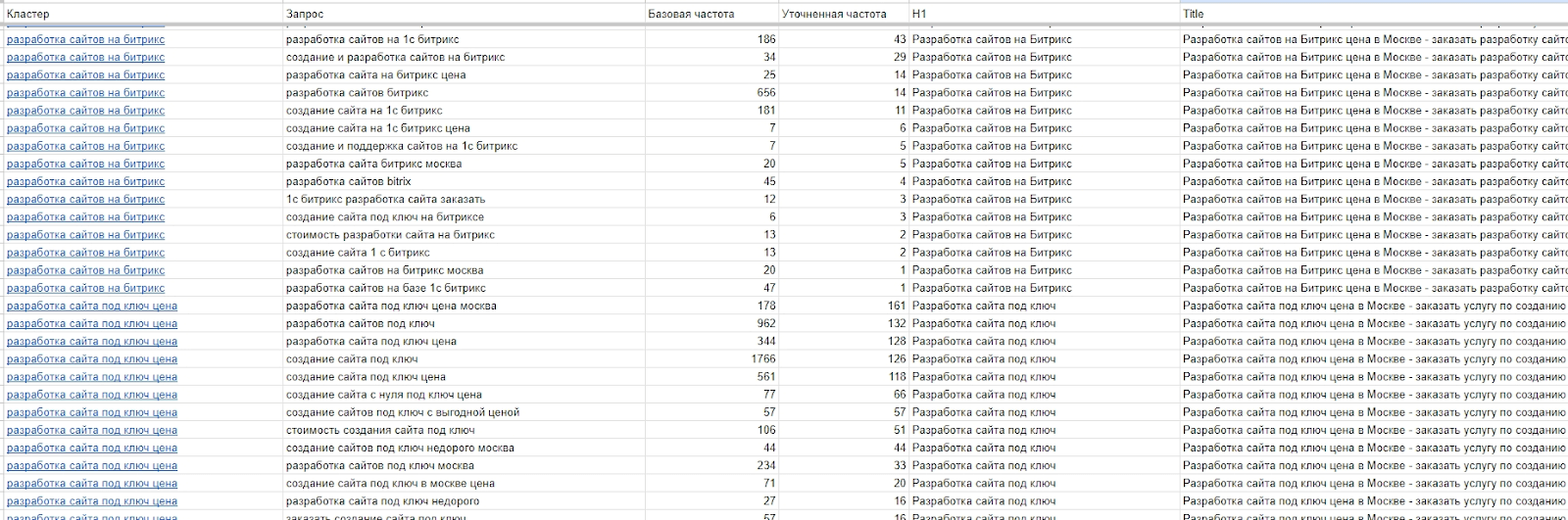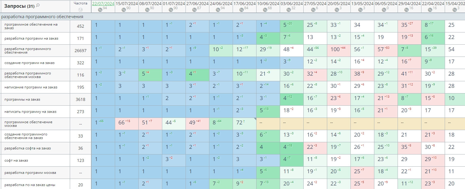 Собрали расширенное семантическое ядро, охватывающее все релевантные запросы в нише веб-разработки.