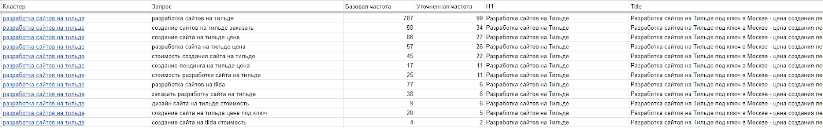 - "Ра зработка сайтов на Тильде": вхождение в ТОП-10