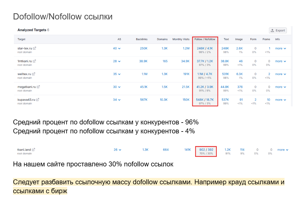 Параллельно столкнулись с главной проблемой — множеством спам ссылок от прошлых подрядчиков. Четыре недели разбирались в этой проблеме, составляли списки "некачественных" ссылок. Собрали правильное семантическое ядро, начали осторожно работать со ссылками. Первые месяцы трафик даже падал — нормальная ситуация, когда чистишь сайт от спама.