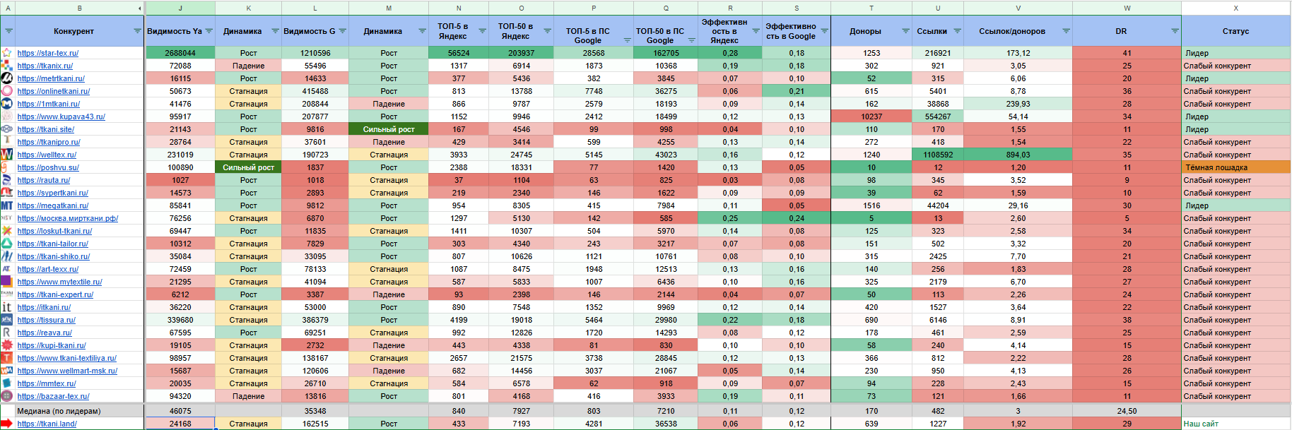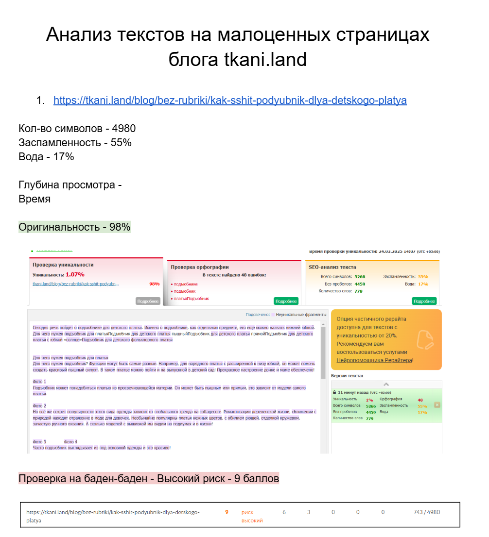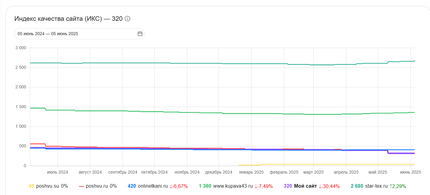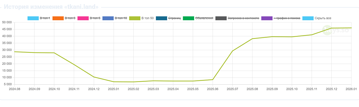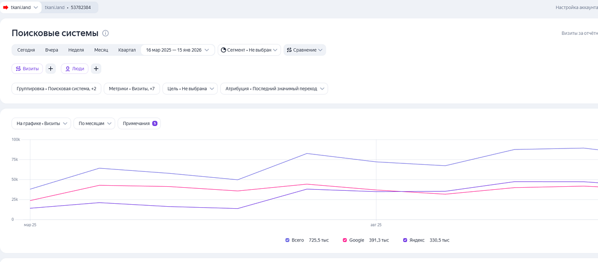 TKANI.LAND — интернет-магазин натуральных тканей, работающий с 2018 года на стыке B2C и B2B сегментов. К моменту обращения компания уже имела определенную репутацию среди любителей шитья и небольших ателье, однако сайт столкнулся с серьезными проблемами в поисковой выдаче.